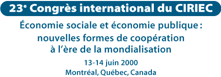 Invitation Le 23e congrès international du CIRIEC, organisé conjointement par le CIRIEC-Canada et le CIRIEC international, aura lieu les mardi et mercredi 13 et 14 juin 2000 à Montréal, Québec, Canada. Le Centre international de recherches et d’information sur l’économie publique, sociale et coopérative (CIRIEC) est une association internationale non gouvernementale qui regroupe des entreprises et des organisations de l’économie sociale (coopératives, mutuelles et organisations à but non lucratif) et du secteur public ainsi que des personnes intéressées par ces champs d’activité. Cette organisation, fondée en 1947, s’efforce de promouvoir des échanges internationaux entre les divers types d’entreprises orientées vers l’intérêt collectif ou l’intérêt général et entre le monde de la pratique et les milieux scientifiques. Le CIRIEC-Canada, créé en 1966, est une organisation à but non lucratif qui rassemble à la fois des membres collectifs (entreprises publiques, coopératives, mutualistes et associatives, fonds de travailleurs, syndicats, centres de recherche universitaires, instituts de formation, etc.) et des membres individuels (chercheurs, enseignants, professionnels). Le but de cette association scientifique est de "contribuer à l’édification d’une économie solidaire par un soutien éclairé et critique au développement de l’économie sociale" et par la promotion de l’intérêt général en matière économique. Tous les deux ans, le congrès international du CIRIEC constitue un prestigieux forum où responsables d’entreprises, scientifiques, analystes économiques, représentants de syndicats et autres intervenants de l’économie échangent informations, préoccupations, idées et expériences. Pour le congrès de l’an 2000, le Conseil international du CIRIEC a choisi le thème : " Économie sociale et économie publique : les nouvelles formes de coopération à l’ère de la mondialisation ". On utilise, pour évoquer les nouvelles tendances de l’économie, divers termes comme le néolibéralisme ou le postkeynésianisme. Cependant, ces expressions ne rendent pas compte de tendances nouvelles telles que la constitution de blocs régionaux ou continentaux, l’adoption de nouvelles politiques économiques et le recentrage des grandes entreprises sur leur métier principal. Elles ne rendent pas compte non plus de la multiplication des formes de coopération entre les entreprises : maillage, alliance stratégique, impartition de services, partage de ressources, etc. Or, à certaines conditions, ces éléments pourraient être favorables à un renouvellement de la démocratie économique et à un nouvel équilibre entre le secteur privé, le secteur public et l’économie sociale, aussi bien au niveau local qu’à l’échelle nationale ou internationale. Le 23e